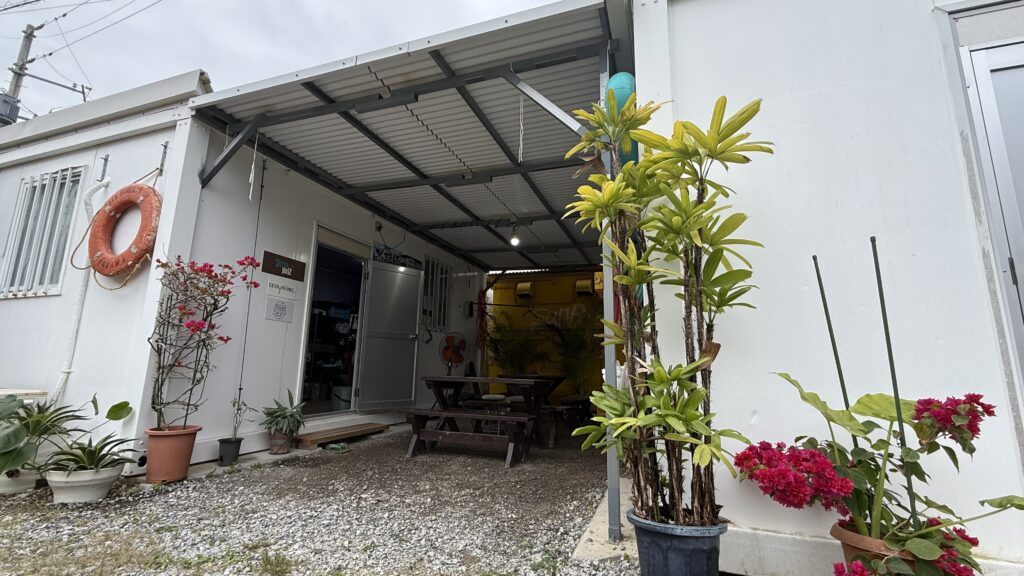 A.はい、あります。 紺色のコンテナ前に駐車後 居酒屋にこや(黄色いコンテナ)前を通って裏の方に行くとターザンワールドマリン恩納村店事務所があります♪
