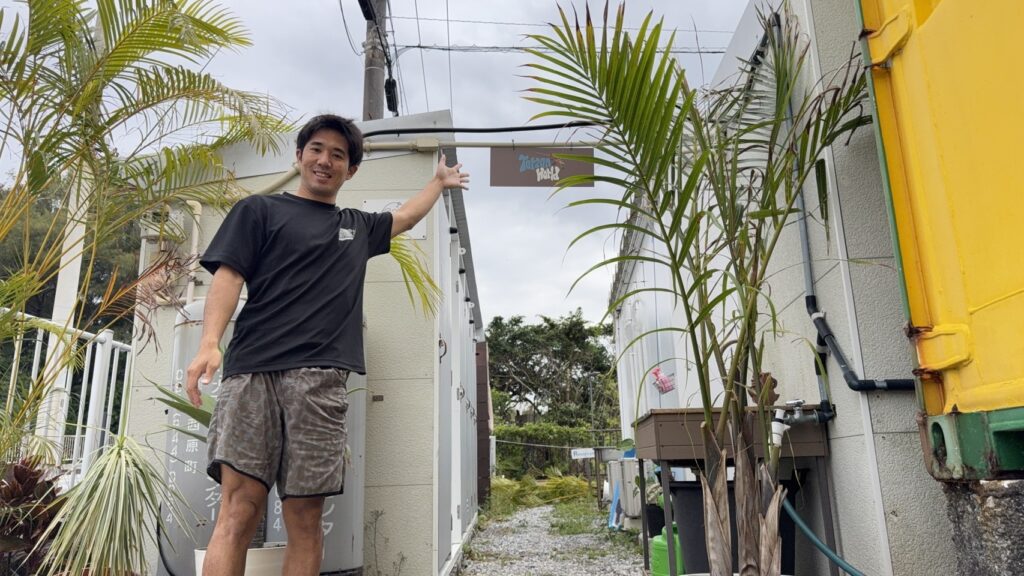 A.はい、あります。 紺色のコンテナ前に駐車後 居酒屋にこや(黄色いコンテナ)前を通って裏の方に行くとターザンワールドマリン恩納村店事務所があります♪